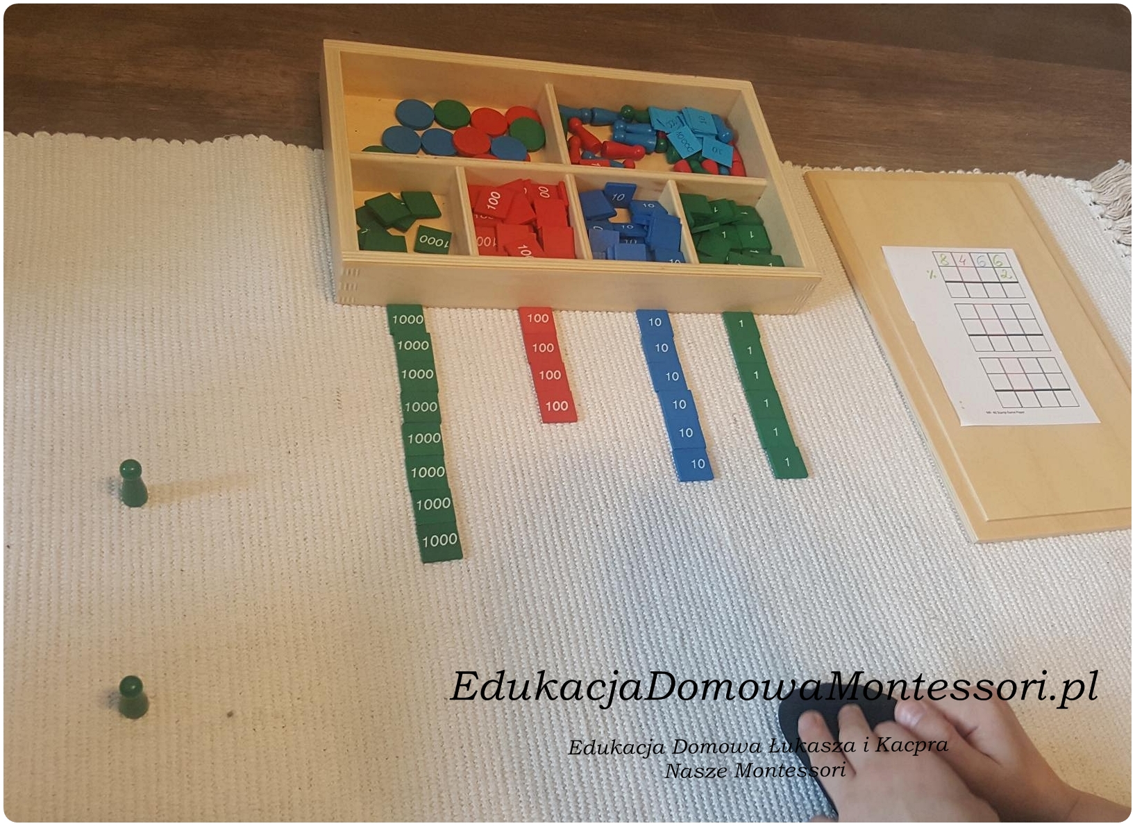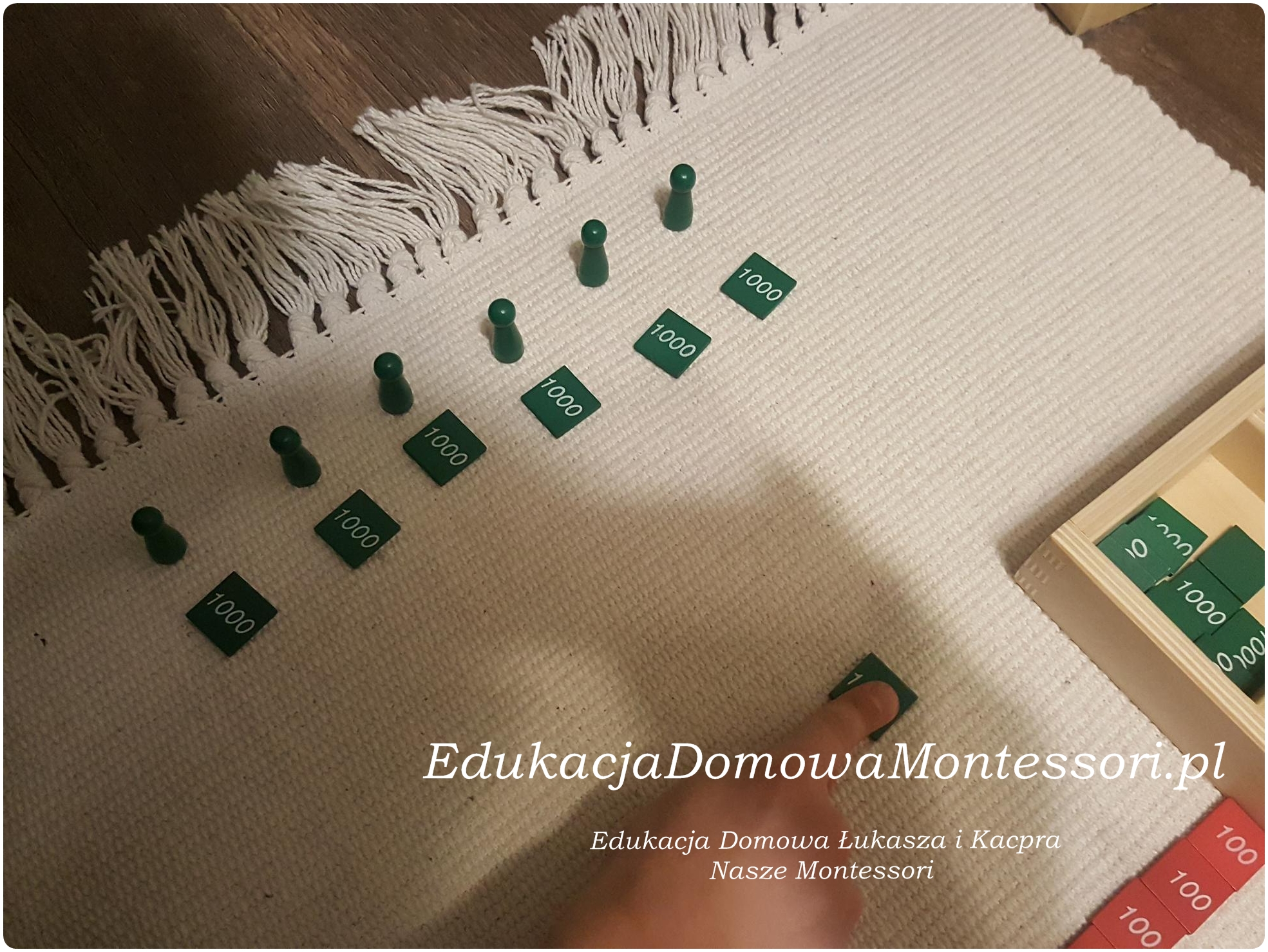 Teraz możemy kontynuować rozdzielanie. Przydzielamy jeden tysiąc niebieskiemu pionkowi, i setki pozostałym zielonym.