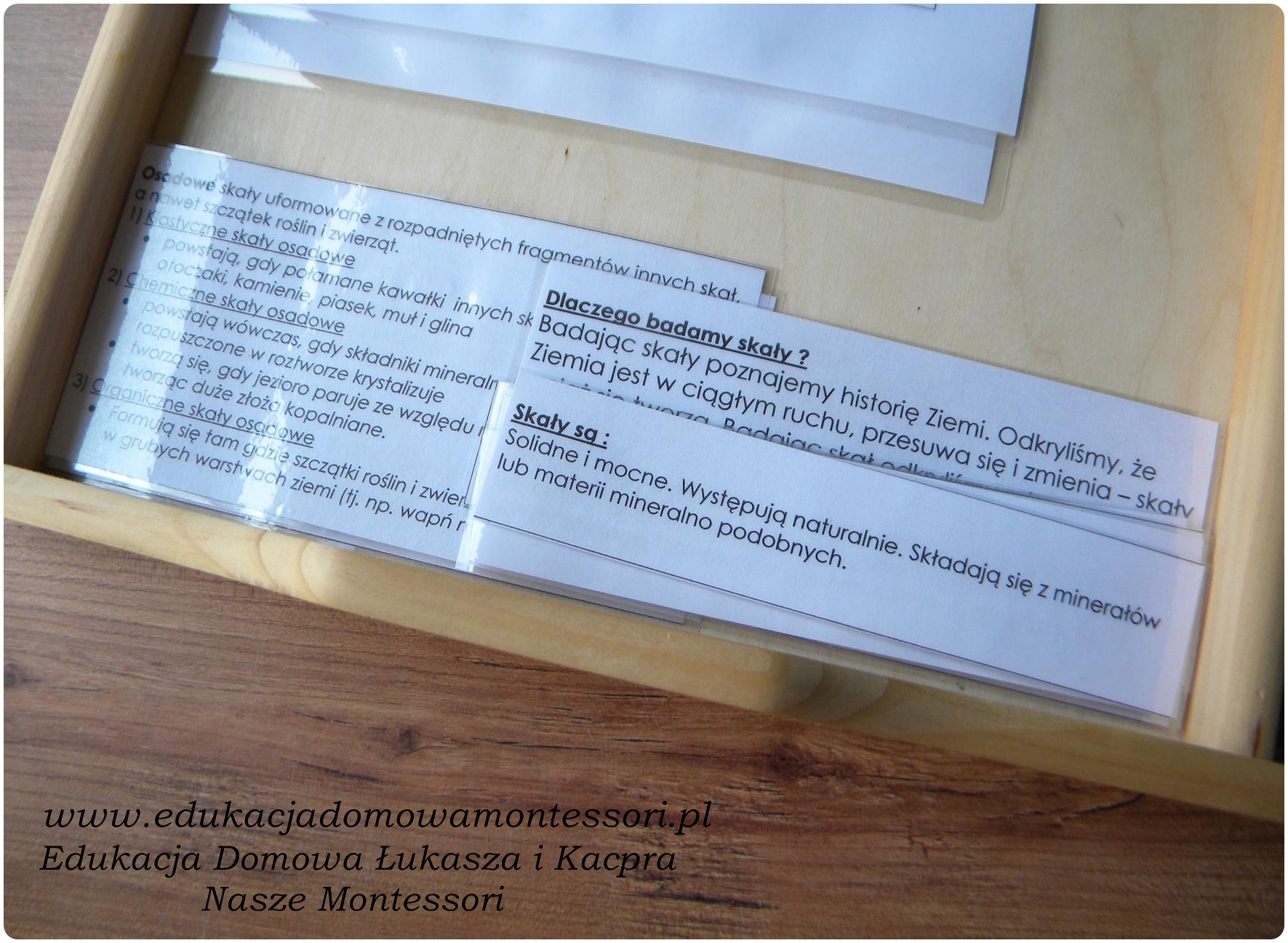 Do kolejnej prezentacji zrobiłam kartę – tabele z podziałem skał, ich zdjęciami ,opisem , duże karty ze zdjęciem i nazwą skały oraz karty z opisami , ciekawostkami . Pomocne było też nasze pudełko ze skałami .