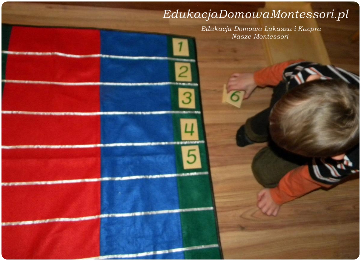 Zaczynamy od karty z cyfrą 1, którą kładziemy w prawym górnym rogu. Następnie kolejne karty układamy w pionowej kolumnie, aż dojdziemy do 9. Układając i licząc używamy nazwy kategorii czyli jedna jednostka, dwie jednostki, trzy jednostki itd.